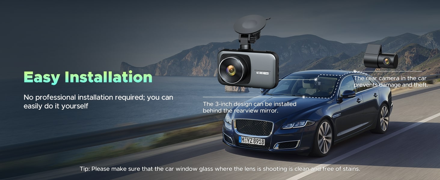 Experience hassle-free setup with the detachable suction cup mount, ensuring quick and secure installation on your windshield. The discreet design seamlessly integrates with your vehicle's interior, maintaining your privacy while providing optimal recording performance. Enjoy the benefits of advanced dash cam technology without compromising your vehicle's aesthetics.