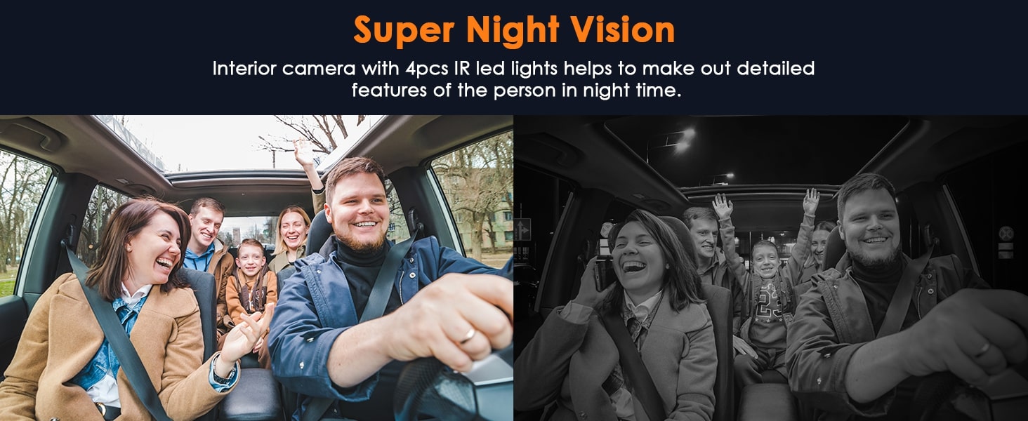 Even in no-light environments, powerful infrared night vision technology clearly captures footage both in front and inside the cabin, ensuring peace of mind for night driving.