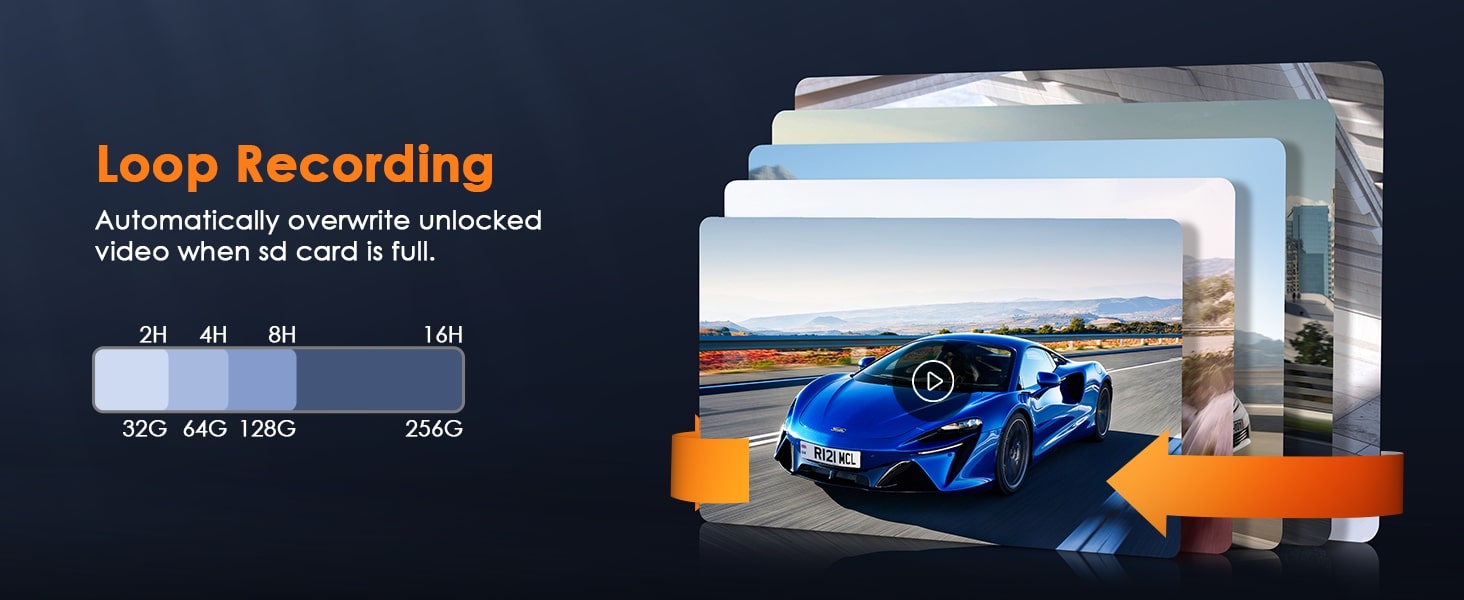Videos are automatically segmented and stored. When the card is full, the earliest footage is automatically overwritten, eliminating the need for manual cleanup and ensuring uninterrupted storage.