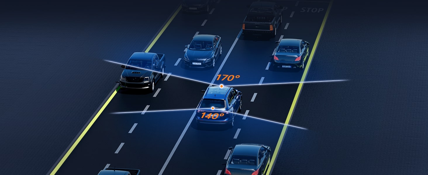 170° Ultra-Wide Angle: Covers Multiple Lanes with No Blind Spots.