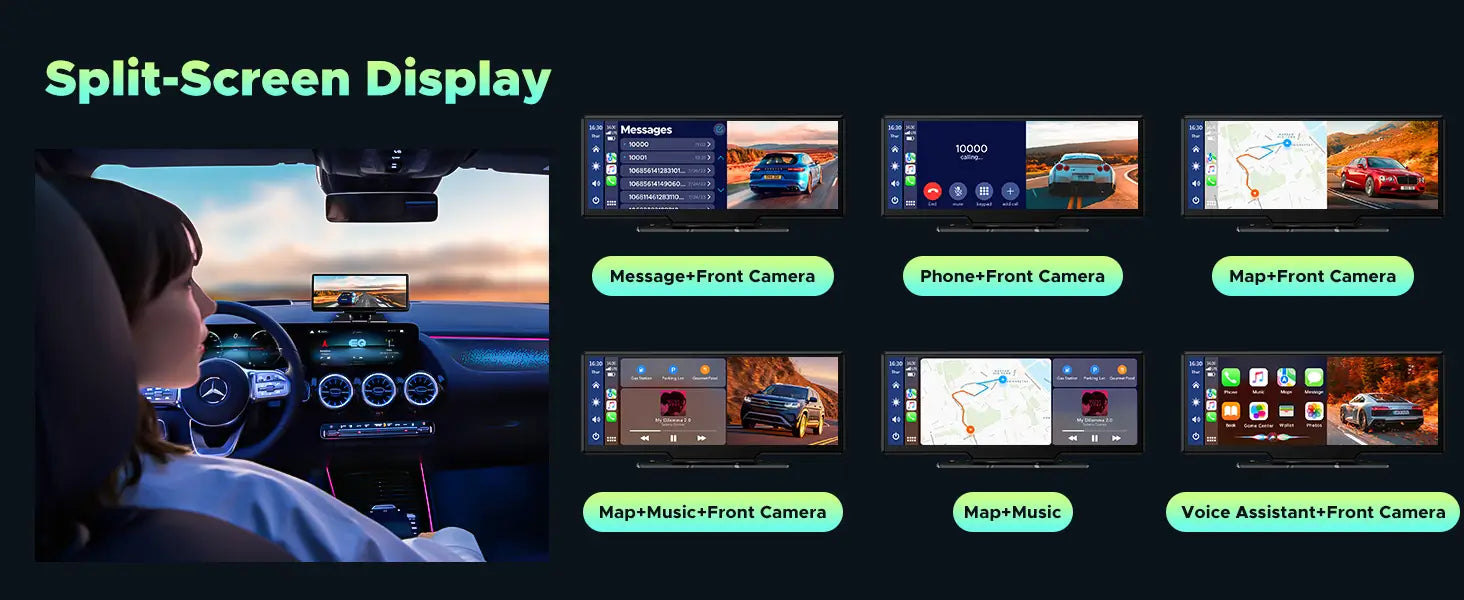 Simply get into your car and your Smartphone will automatically connect to the car carplay screen; With CarPlay display, you can access your smartphone's apps, maps, music, videos, and other features, as well as use Siri or Google Assistant voice to control the Car play screen.