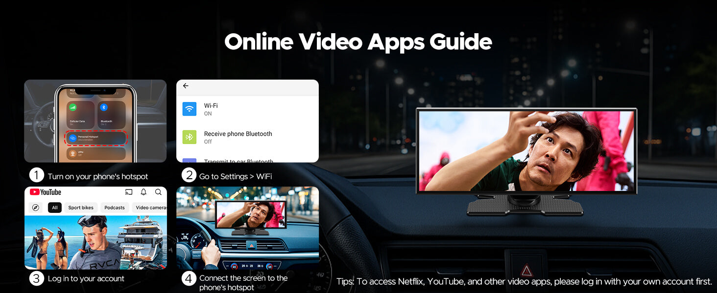 10.25" Smart Car Display with Built-in Netflix & YouTube
