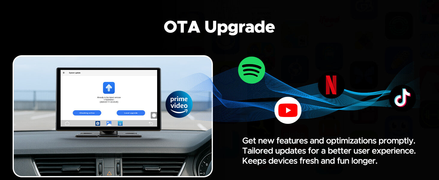 The Lamtto RC30 is a 9-inch smart display that upgrades your car with wireless CarPlay & Android Auto, built-in entertainment apps (Netflix, YouTube, TikTok), a 1080P rearview camera, and customizable display options. Enjoy seamless connectivity, flexible audio output, easy plug-and-play installation, and automatic OTA updates for a safer and more enjoyable driving experience.