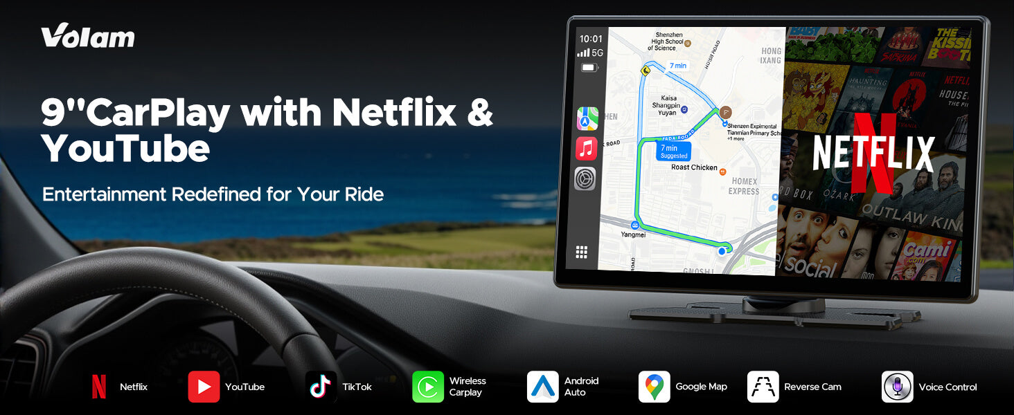 LAMTTO RC30 9‘’ Carplay Screen with Netflix YouTube and 1080P Backup Camera