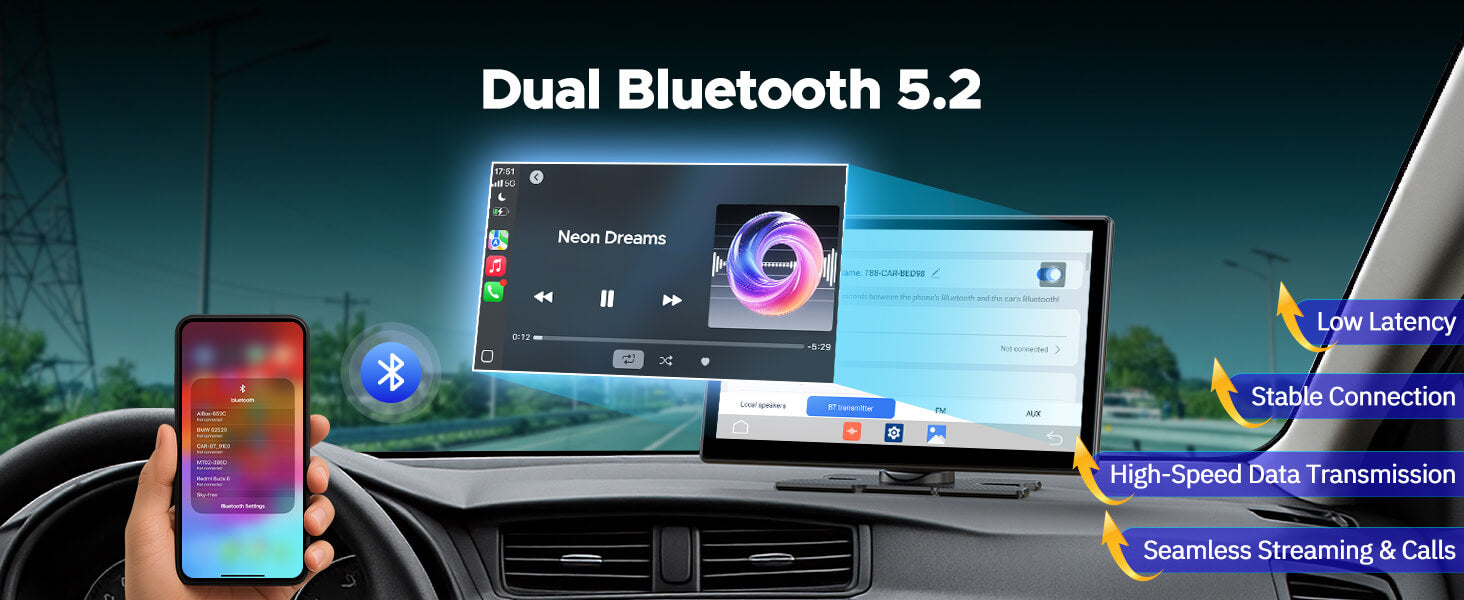 Equipped with 5G Wi-Fi and Bluetooth 5.0, the RC30 delivers fast and reliable performance. Enjoy smooth streaming, quick response times, and dependable connections, even on long road trips.