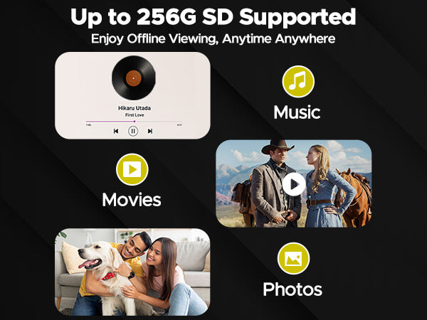 The RC30 comes pre-installed with popular streaming apps like Netflix, YouTube, and TikTok. Stream your favorite shows, movies, and sports directly on the 9-inch HD display. A built-in TF card slot (SD card not included) allows for offline playback of downloaded media.