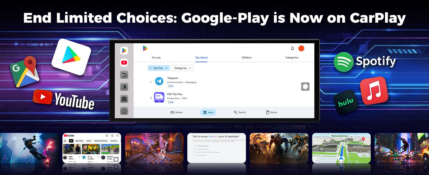 - Built-in Google Play Store (YouTube, Hulu, TikTok...)
