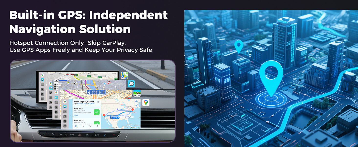 Forget about mounting your phone or worrying about battery life. The RC32 comes with its own built-in GPS, so you get clear, reliable directions straight on the big screen—no phone required. Hook up to a hotspot for live traffic with Google Maps or Waze, or download offline maps ahead of time and stay on track even when you lose signal. Whether you're crossing state lines or exploring back roads, your route stays right where you need it.