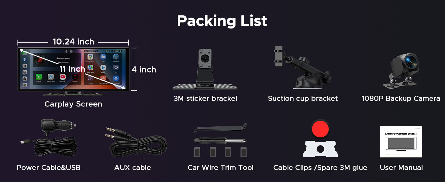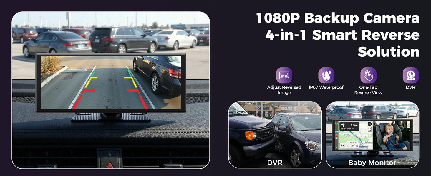 1080P Backup Camera with Built-in DVR, 11" screen、Built-in Google Play&Google Assistant Gemini、Instant-Wake Technology, Zero Wait, Voice control、Online navigation, Offline maps, Wireless Carplay and Android Auto