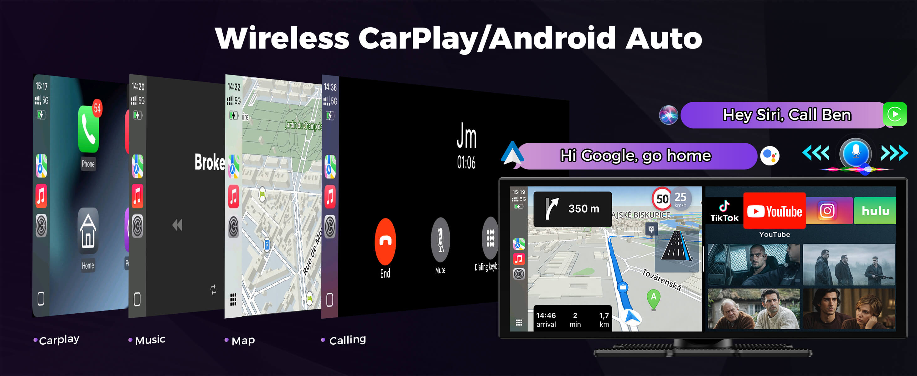- Works with: Wireless Apple CarPlay & Wireless Android Auto