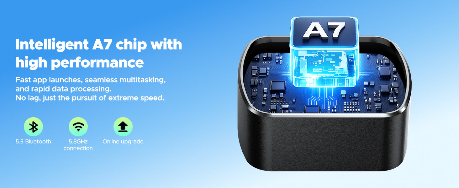 Built-in 2.4GHz/5GHz dual-band Wi-Fi chip and Bluetooth 5.0 module provide faster pairing speeds, ultra-low latency data transmission, and stable connection performance. Real-time navigation, high-definition calls, or music/video playback – all remain flawlessly smooth. After the first successful pairing, it automatically reconnects every time you get in the car, no repeated operations needed.