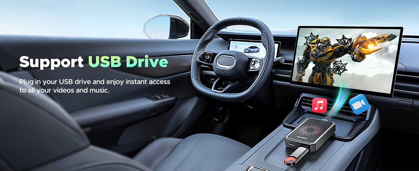 Enjoy entertainment without needing an internet connection. Insert a USB drive filled with your favorite movies, music, or photos, and play them directly on the car's display. This is the perfect solution for data-free road trips or areas with poor phone signals, ensuring your entertainment never stops.