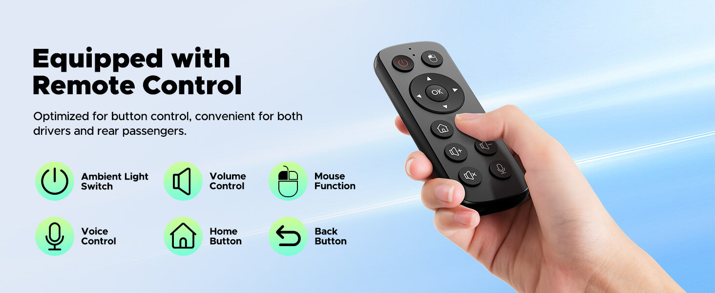Take full command of your entertainment system anytime, anywhere. The included remote allows both front and rear passengers to easily navigate, control media playback, and adjust settings without touching the main screen. By enabling others to manage the entertainment system, the driver can stay focused on the road, improving convenience and fostering a safer driving environment. (Note: Due to platform restrictions, remote control functionality for Netflix and YouTube may be limited.)